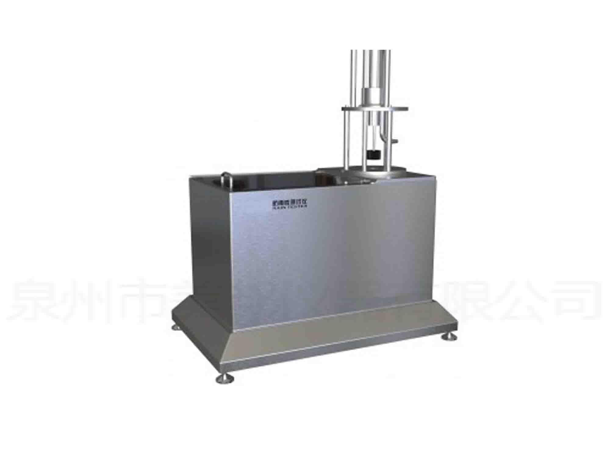 淋雨性測(cè)試儀,可檢測(cè)在不同雨水壓力作用下織物或復(fù)合材料的拒水性能。本儀器可模擬雨從水平方向噴向垂直固定在不銹鋼槽內(nèi)的待測(cè)織物。試樣背面緊貼著標(biāo)準(zhǔn)吸濾紙(測(cè)試前后需稱重)。水柱中的水經(jīng)標(biāo)準(zhǔn)噴頭噴射形成雨,而水柱水量可由600mm增加至2400mm。