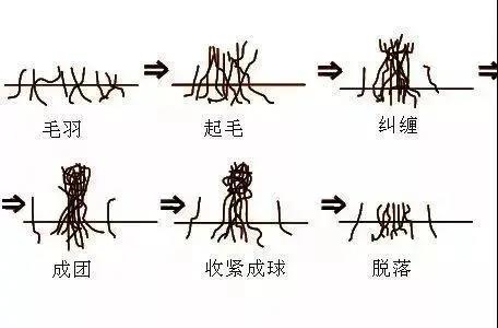 這一移動是由外力磨擦作用引起。比如放進(jìn)洗衣機(jī)里翻來滾去,或者是清洗時大力揉搓,抑或在穿著過程中受到比本身粗糙的任何織物的磨擦,都會產(chǎn)生起毛,并再形成球粒