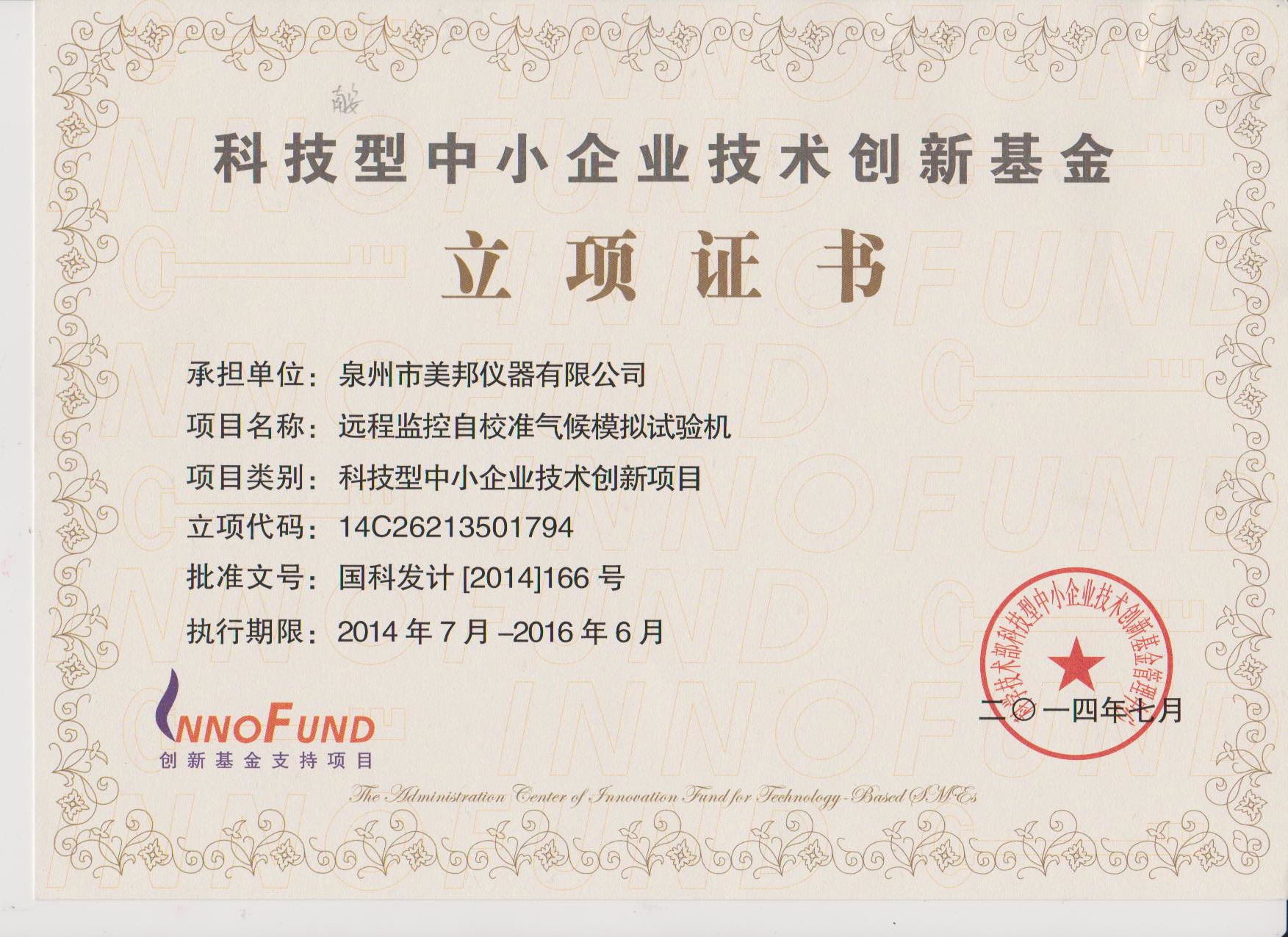 我司遠程監(jiān)控自校準氣候模擬試驗機 喜獲科技型中小企業(yè)技術(shù)創(chuàng)新基金立項支持