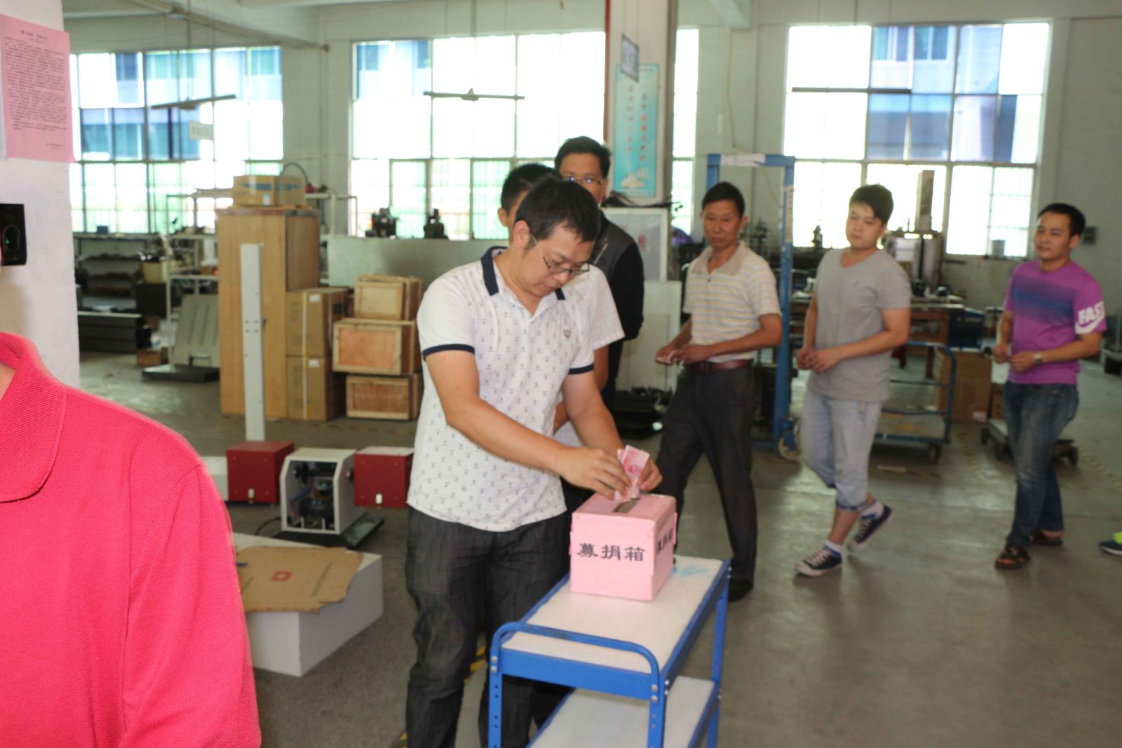 在一曲《愛的奉獻》樂曲聲中,捐款隊伍緩緩走向募捐箱。公司總經(jīng)理彭銳和四位股東率先分別捐贈500元,公司管理人員和員工也紛紛慷慨解囊,你五百,我四百,他三百··· ···遠在駐外辦事處同志,特意打電話回來交代在場同事代為捐款,所有美邦人都將一份份滿懷深情的愛心、親切的關(guān)懷投入到募捐箱中,默默祈禱劉父早日康復(fù)。此次活動,共捐得善款10000元,主要用于技術(shù)部劉尾父親身患肺癌的救助。