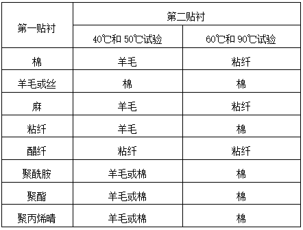 貼襯選擇:測試耐洗色牢度所用的貼襯織物,可采用單纖維貼襯或多纖維貼襯。單纖維貼襯織物應(yīng)符合GB7565-1987《紡織品色牢度試驗綿和粘纖標準貼襯織物規(guī)格》,GB/T7568.1-2002《紡織品色牢度試驗毛標準貼襯織物的規(guī)格》,GB/T13765-2002《亞麻和苧麻標準貼襯織物》和ISO105-F07-2001《醋纖貼襯織物規(guī)范》等標準要求:多纖維貼襯應(yīng)符合GB11404-1989《紡織品色牢度試驗多纖維標準貼襯織物規(guī)格》標準要求。