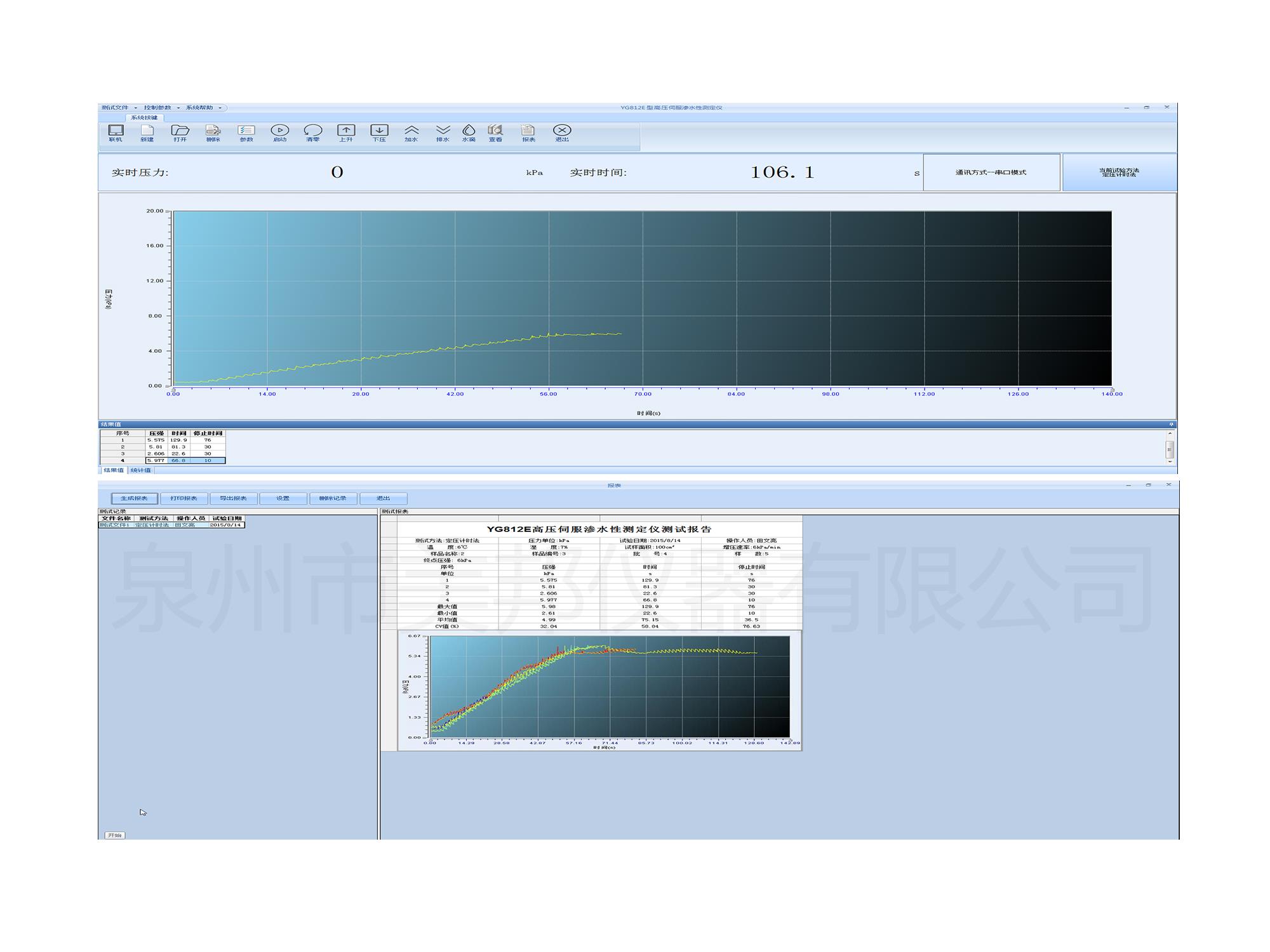 5、五種測(cè)試模式可選,增壓法,定壓計(jì)時(shí)法,定壓定時(shí)法,撓曲松弛及滲水漏水法。