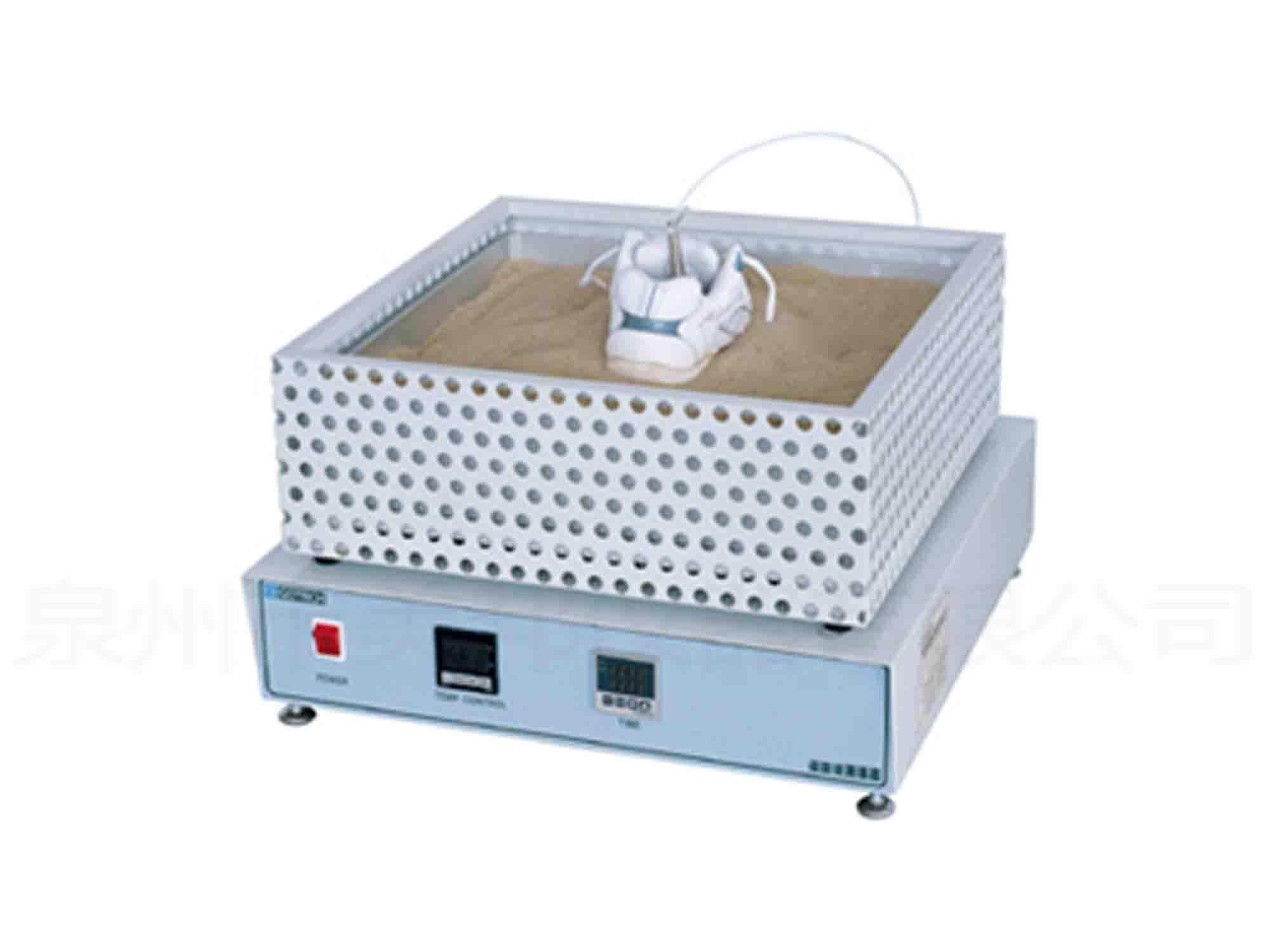 本機(jī)系用來(lái)測(cè)試成鞋鞋底的耐熱程度。將試樣鞋放在某一規(guī)定溫度的熱板上一定時(shí)間后,檢查鞋底內(nèi)表面升溫情況。