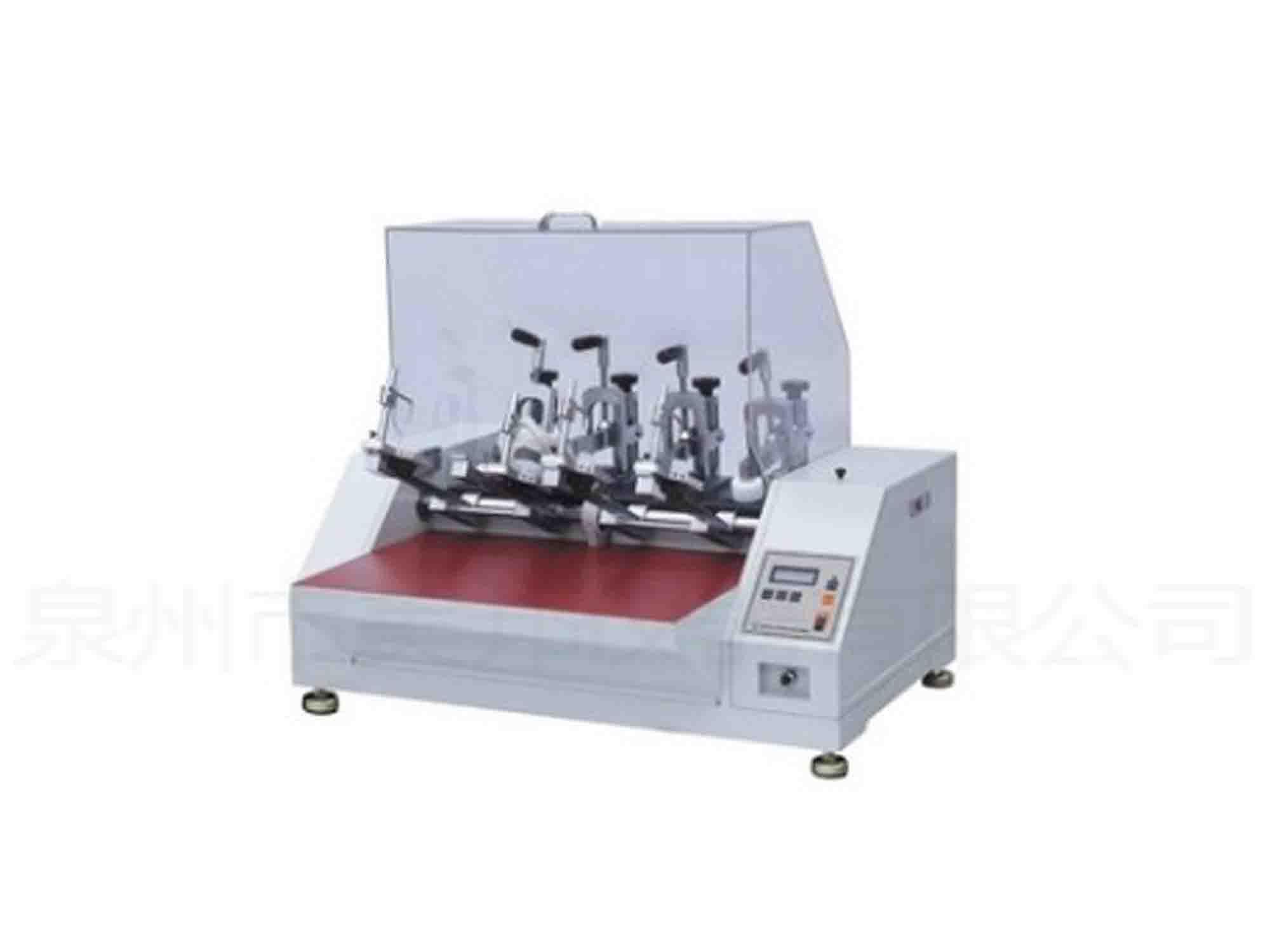 本機是以定頻率、訂角度的方式,在長時間的連續(xù)往復彎折成鞋后,評估其耐折性能及其龜裂程度。